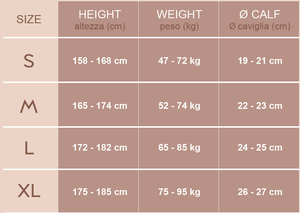 Il dispositivo è destinato ad entrare in contatto diretto con una superficie corporea del paziente. In particolare, al fine di esplicare la destinazione d’uso prevista, deve essere indossato sugli arti inferiori su cute integra. Utilizzare per favorire la circolazione e donare leggerezza alle gambe